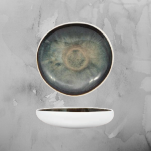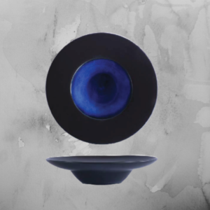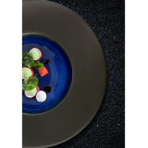 La raffinata porcellana opaca nera e una rivoluzionaria vernice reactive, che spazia nei toni del blu più profondo, caratterizzano questa serie di piatti che include forme dalle più comuni a quelle più originali.