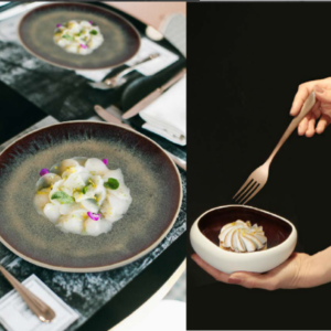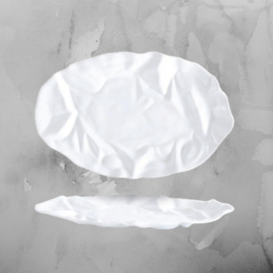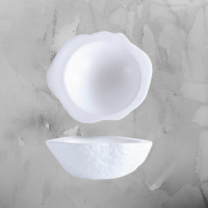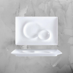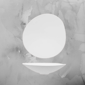 Questa linea, grazie ad uno stampo originale che si rifà alla forme naturali delle rocce, consente di presentare la portata in un piatto di raffinata porcellana declinata nei due colori opposti per eccellenza: il bianco ed il